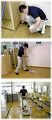 お店の床をキレイに保つには定期的なワックスがけが必要です。